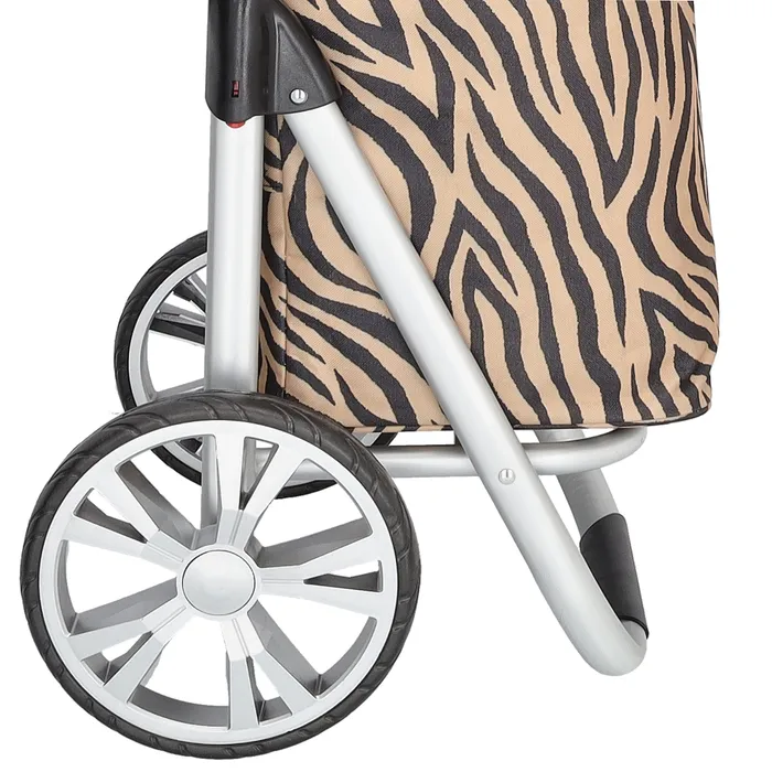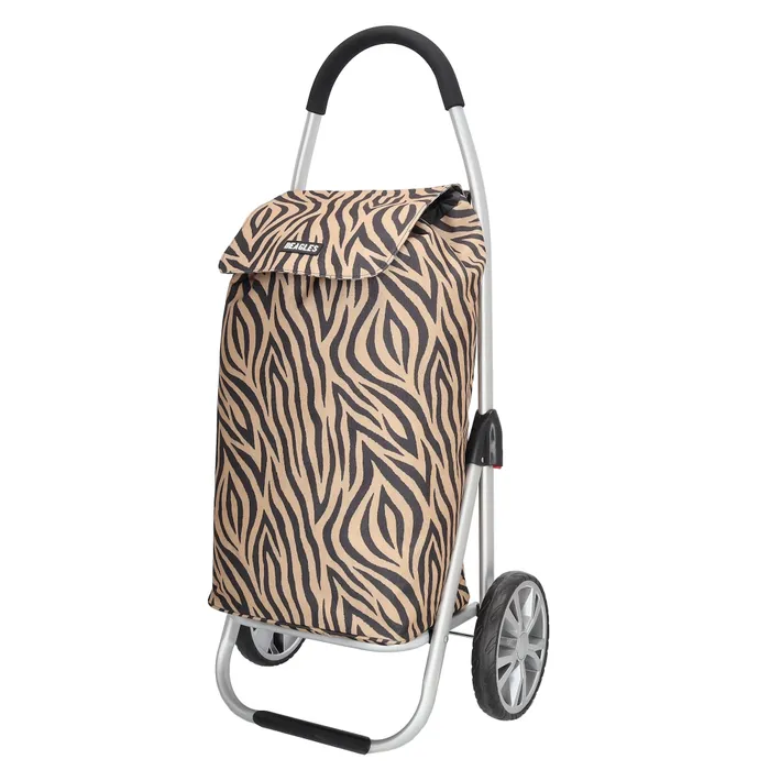 Beagles ostoskärry 102cm on tilava ja tukeva. Kärryssä on isot pyörät, halkaisija 20 cm. Kangasosa on likaa ja kosteutta hylkivää nylonia sisämuovituksella. Ostoskärryssä on takana vetoketjullinen tasku. Kassi on helppo avata isoksi ja se suljetaan nyöreillä. Kärryssä on koukku, jolla sen voi ripustaa kaupan ostoskärryyn.