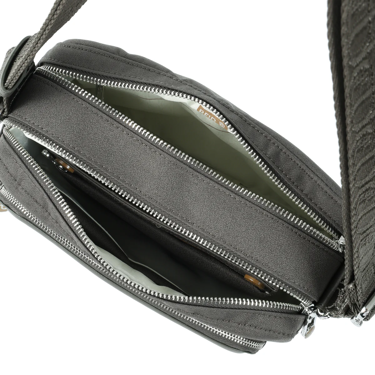 - edessä ja takana vetoketjutaskut, kaksi tilavaa päätaskua: RFID suojaus, pehmustettu puhelintasku, vetoketjutasku, irrotettava avainlenksu